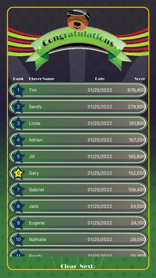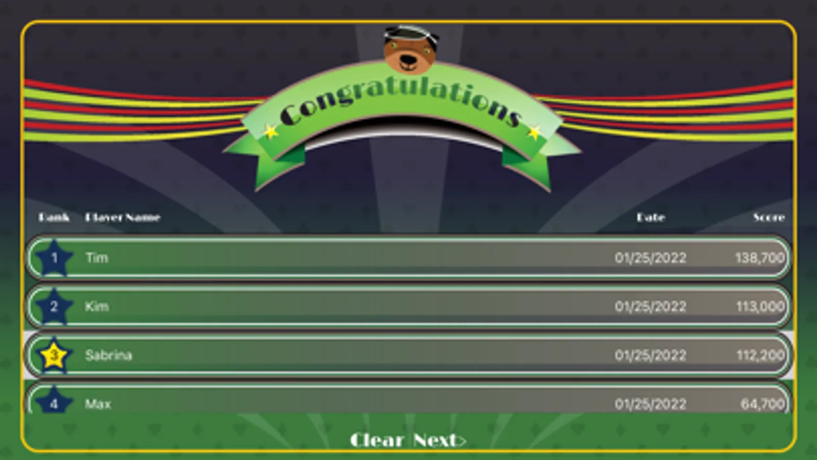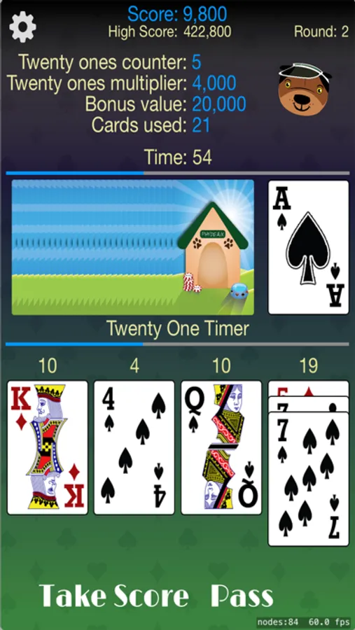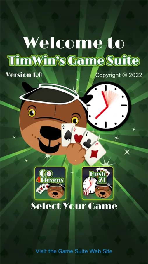 Someone can select between multiple casual cards games to play rounds and see how high they can score.