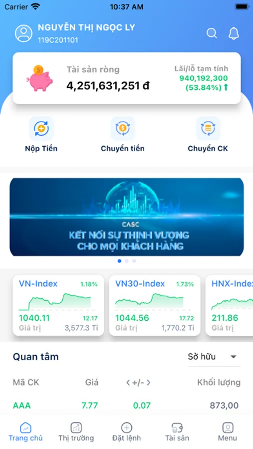 CASC – Nền tảng đầu tư tài chính với giao diện thân thiện, tích hợp các tính năng mở tài khoản chứng khoán, giao dịch, đầu tư nhanh chóng, an toàn và bảo mật của Công ty Cổ phần Chứng khoán Thủ Đô.