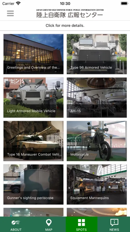"The Japan Ground Self-Defense Force (JGSDF) Public Relations Center Rikkun Land” is the JGSDF's only large-scale public relations facility, and was established in 2002 under the concept of "See, touch, and feel" to provide visitors with a broad image of the JGSDF in a continuous and systematic manner.