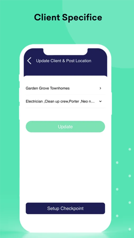 Through StaffWizard's main program GPS checkpoints can be set up for individual clients' sites to be used for check-in purposes on the post phone.