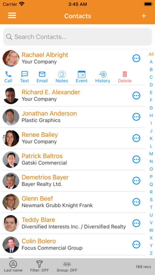 • Filter by name, company, city or contact type to locate records quickly