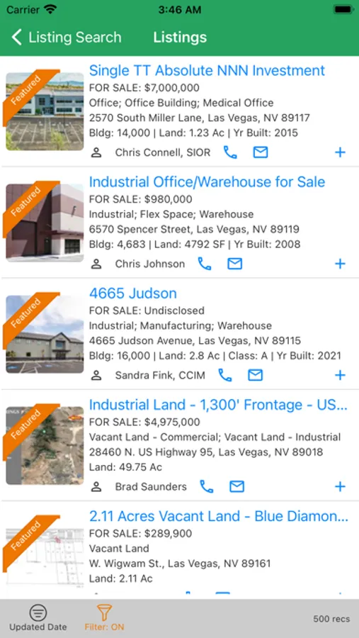 • Use the ‘listing search’ tab to access thousands of commercial listings. Pull properties directly into your CRM property library with the touch of a button