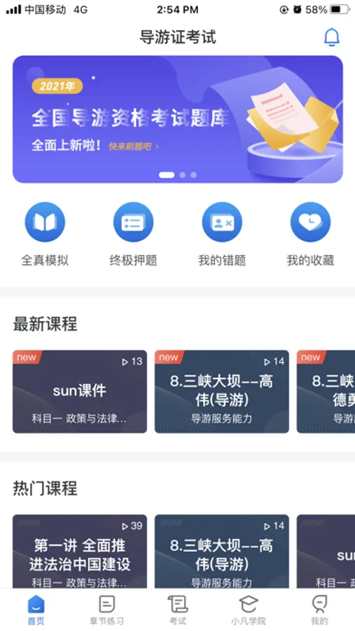 知旅云导游考试无缝对接导游证考试大纲,海量题库供学生练习。此软件目前只为已购买的学校学生进行服务,在教师的指导下进行导游证相关的考试、练习、学习操作,最终达到自我能力的提高,顺利通过导游证考试。 该软件以题库练习、终极押题、模拟考试、自主组卷、错题自动收录为主要功能点,满足学生进行导游考试训练的各种场景。使用移动端,学生可以更加灵活方便的在线考试练习;全方位模拟真实考试,让学生可以快速掌握和了解专业知识