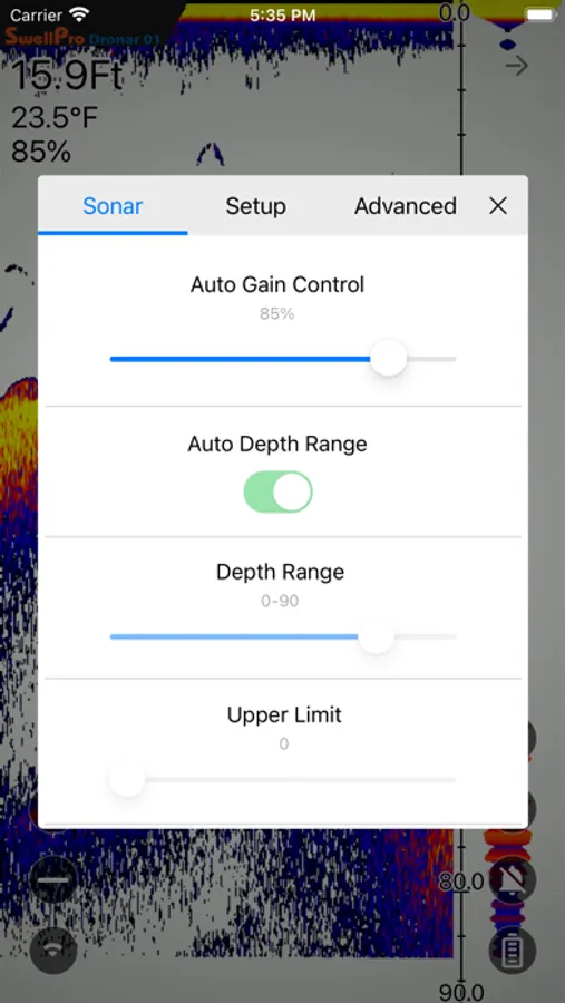Get notified when the Dronar detects fish underwater. Set the alarm to notify Small/Medium/Large fish.