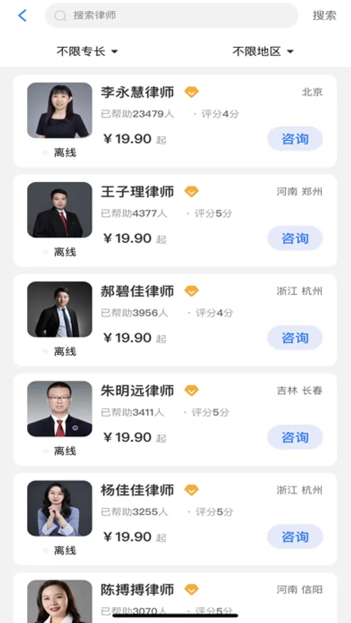 询律律师是连接律师和用户两端的法律服务平台,打通用户与律师之间信任的通道。