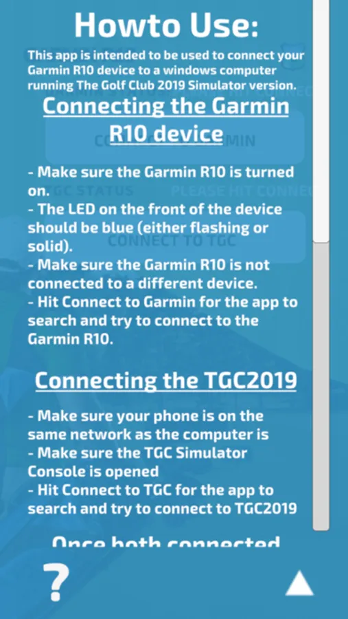 Through this app it is possible to connect your Garmin R10 Approach to the The Golf Club Simulator 2019 software. This will allow you to play golf with up to 4 people, either local or online. Compete in the online tournaments on stunning 4k real-life and fantasy courses.