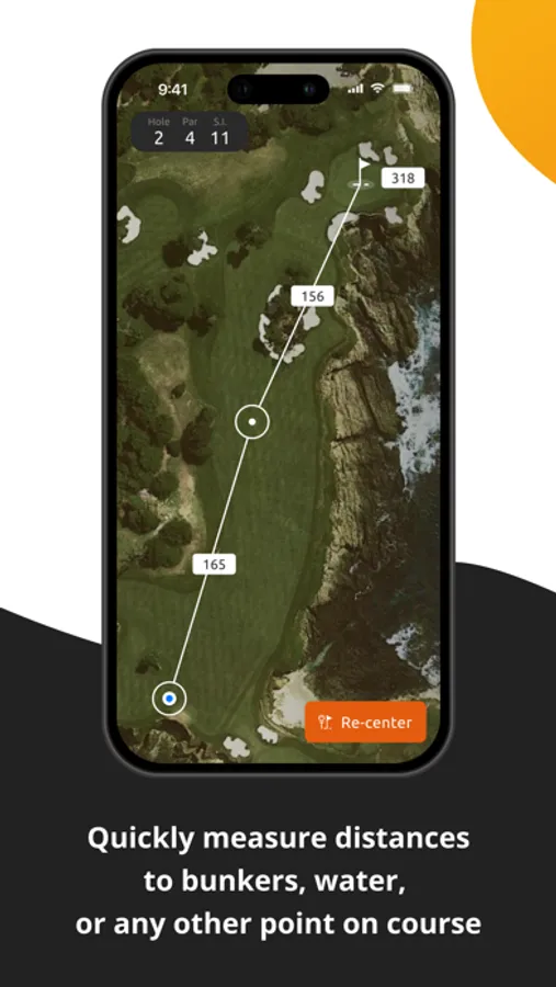 - Easily measure yardage to bunkers, water, trees or any other point on the course.