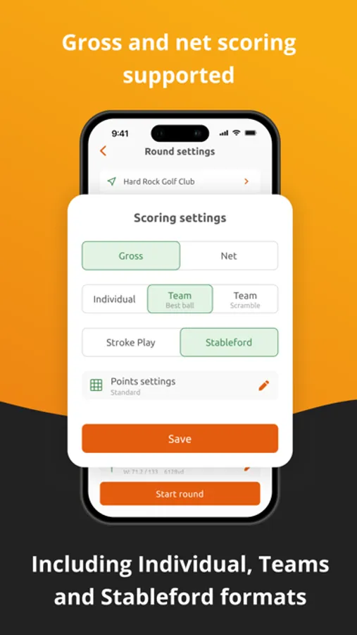 - Convenient scoring for yourself or the entire 4some, including Strokeplay, Stableford, Scramble and Best Ball. Gross and handicap-adjusted net scoring are supported.