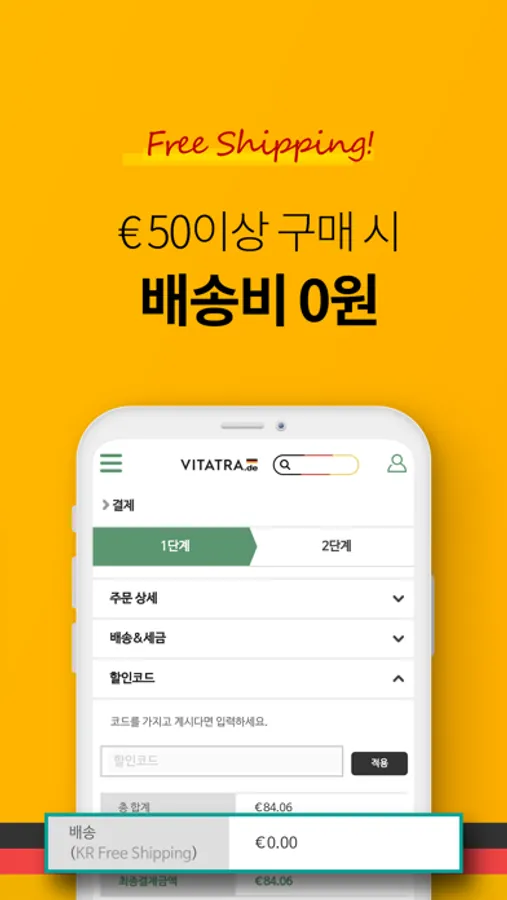 €50이상 주문을 하면 배송비가 0원으로 무료배송 혜택을 받을 수 있습니다.