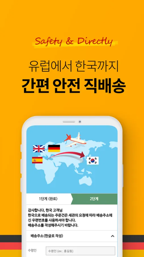 주문 시, 한글로 주소를 입력하면, 배대지를 신청 없이 유럽에서 한국까지 직배송됩니다.