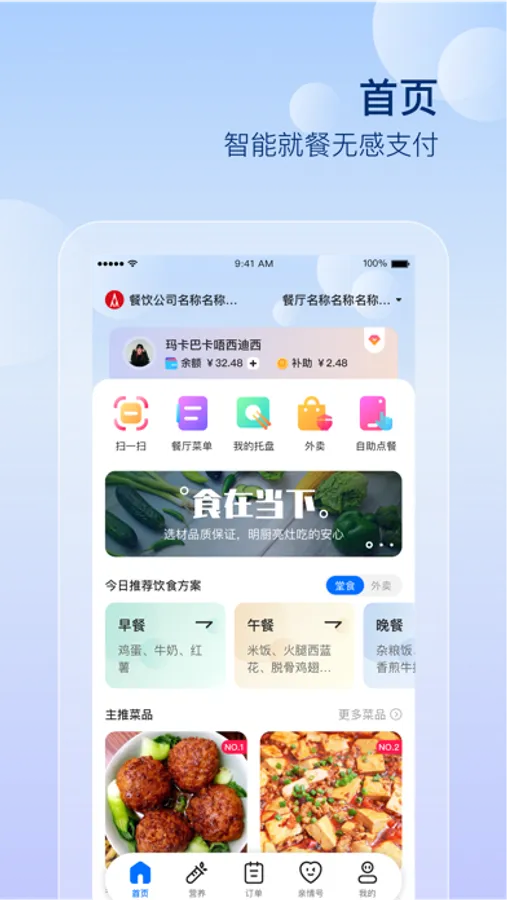 主要通过扫码授权、人脸授权与托盘绑定、无感支付等功能进行就餐过程,可减少排队用餐时间,并在此基础上提供营养分析及推荐运动等功能,保障人员健康和安全