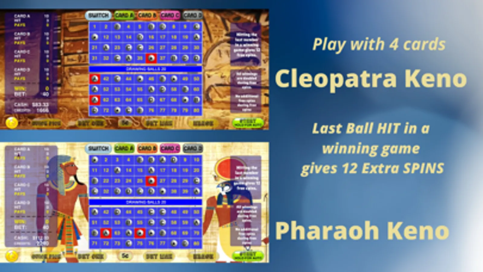 Download the Cleopatra Keno game NOW! and play Keno on your device now!