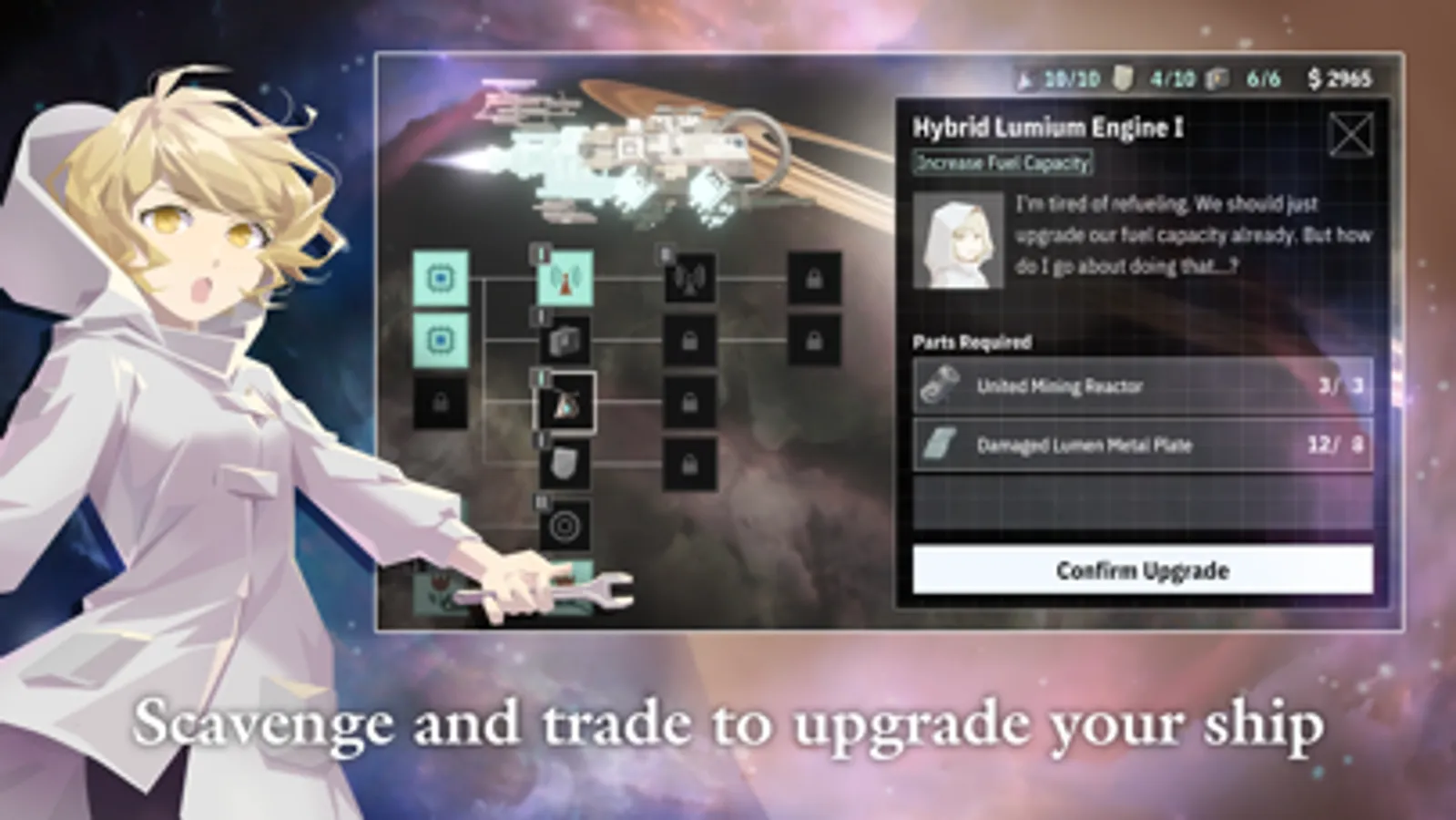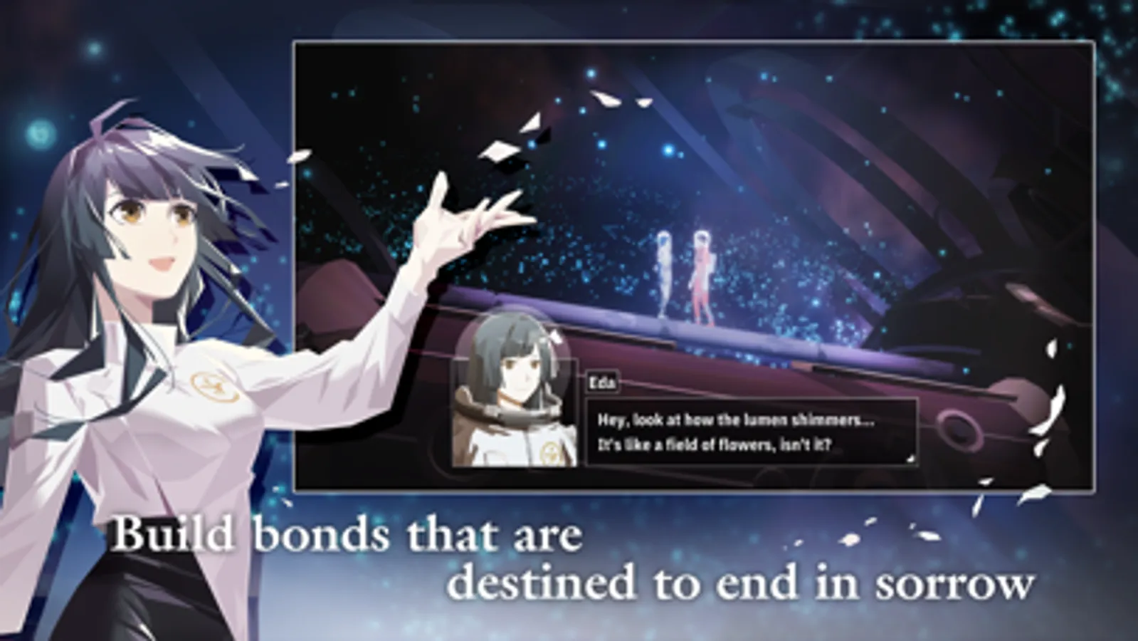 Taking place in a lawless solar system at the height of a gold rush in space, players play as the exiled noble Jun, who is accompanied by Eda, a witch orphaned by war. Together, they embark on a journey of self-discovery, as they search for treasure-filled asteroids of legend and lore. However, what appears to be a blessed encounter will turn into a lifelong burden... Will Jun, now a withered old man, be able to see his lover one last time?