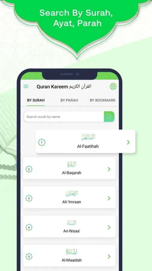 • Surah Index to access your favorite Surahs