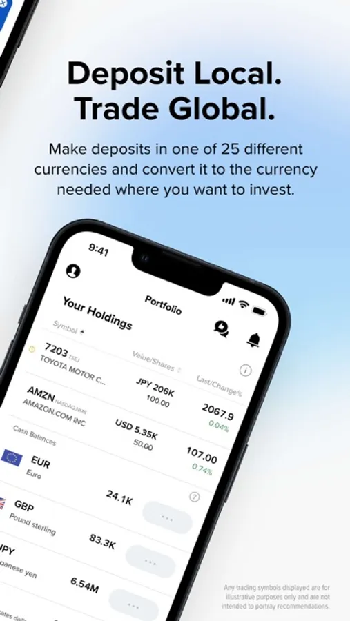 The projections or other information displayed in the GlobalTrader app regarding the likelihood of various investment outcomes are hypothetical in nature, do not reflect actual investment results and are not guarantees of future results. This information may vary with use of the tool over time.