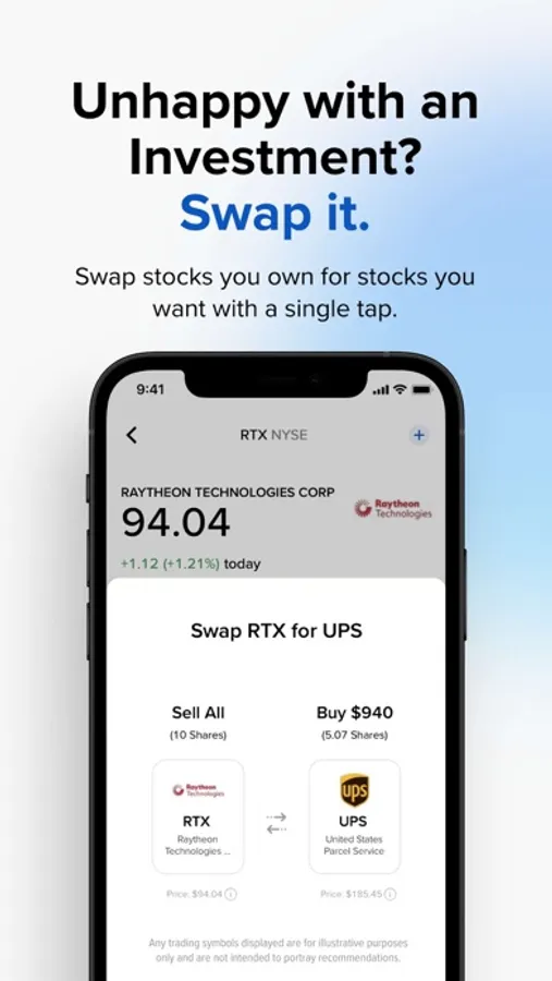 Unhappy with an investment? Swap stocks you own for stocks you would like with a single tap.