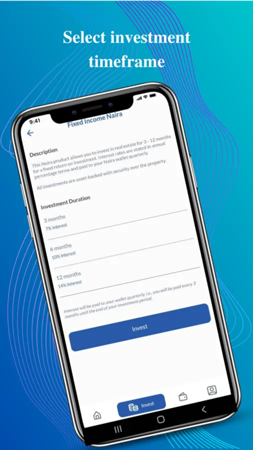 You can invest as little as £10 in our UK real estate product and earn fixed returns in pounds. You decide how long to invest. Choose between three, six, twelve, and twenty-four months tenors, make payment from your wallet, and watch your money grow. We will do the rest for you.