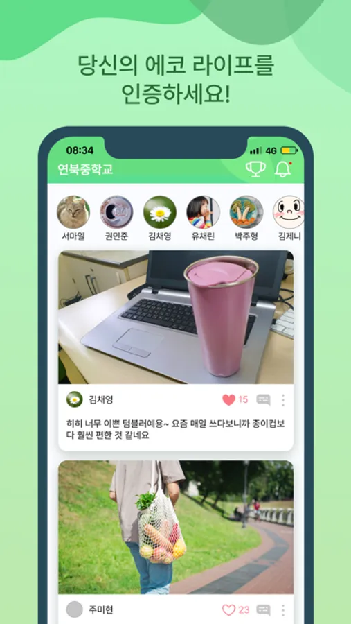 우리학교 친구, 우리동네 주민들과 생활 속 에코라이프를 공유해보세요.