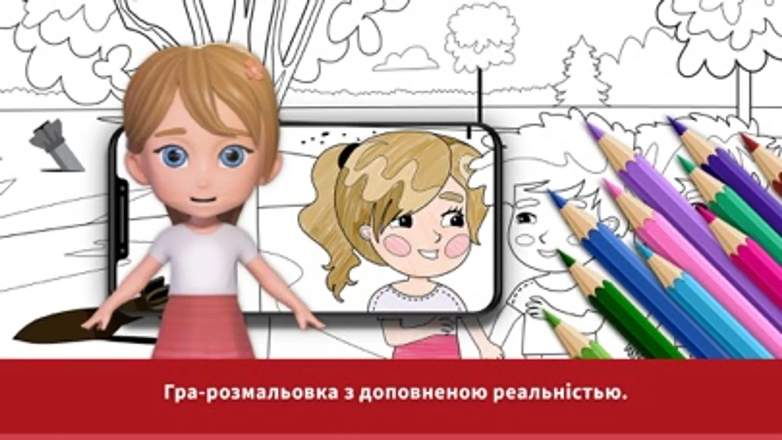 Мобільний додаток з використанням технології Доповненої Реальності (ДР) для книжок-розмальовок, орієнтовано на дітей молодшого шкільного віку.
