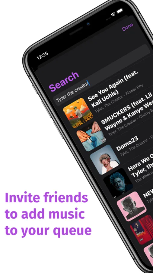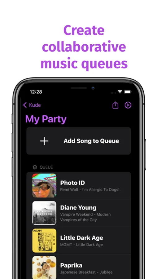 Kude allows you and your friends to create collaborative music queues. Now you can invite your friends to add music to your queue from their own phones!