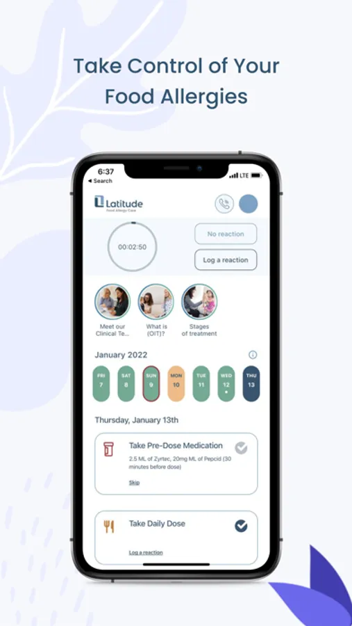 The Latitude mobile app makes it easy for its patients to manage their oral immunotherapy (OIT) food allergy treatment. Use the app to: