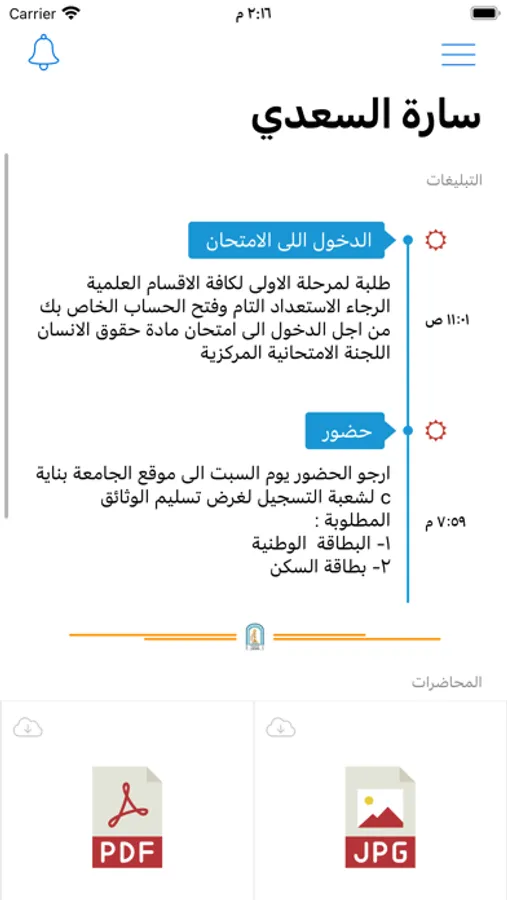 المصـادر التعليميـة، التقاريـر الاكاديميـة، فضلا عـن الجـزء الخـاص بالتعليـم الالكـتروني الـذي يتخصـص بأجـراء عمليـة التواصـل بـين الأسـتاذ وطلبتـه مـن خـلال ارسـال المحـاضرات الالكترونيـة واسـتلام التقاريـر، الاختبـارات الالكترونيــة..... وغيرهــا مــن الفعاليــات الأخــرى.