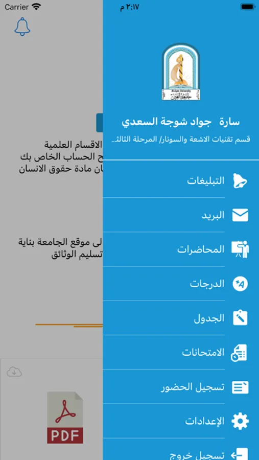 حيـث انـه يقـوم بجمـع كل المعلومـات الدراسـية المتعلقـة بطلبـة الجامعـة في الكـورس الـدراسي وتفاصيـل امتحاناتهـم، علمـا بـان جميـع المعلومـات المذكـورة اعـلاه سـتكون متاحـة لـكل مـن الطلبـة واوليـاء امورهـم اضافــة الى انهــا متاحــة لــكل مــن الــكادر الإداري والتدريــسي عــى حــد ســواء.