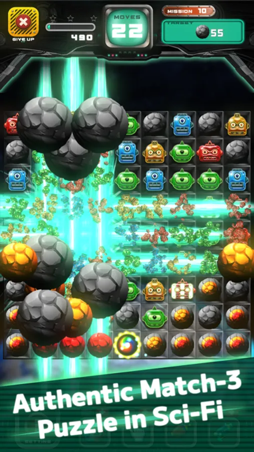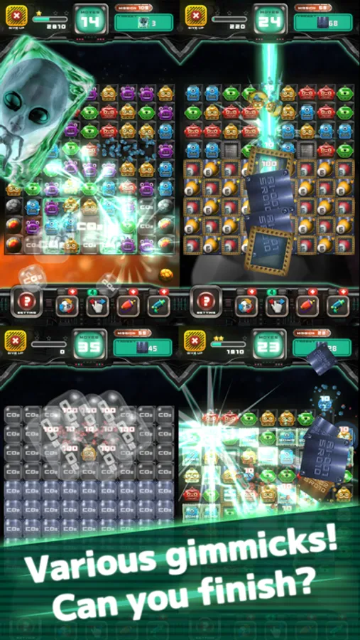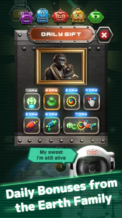 By matching 3 robots, it is possible to respond to all events in outer space, and it is the mission assigned to the gorilla to clear numerous missions.