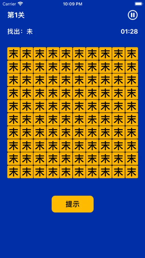 这是一款汉字找不同的趣味小游戏,从众多外形相似的文字中找出不同的字即可过关,超过时间未找出则过关失败,非常考验你的眼力~
