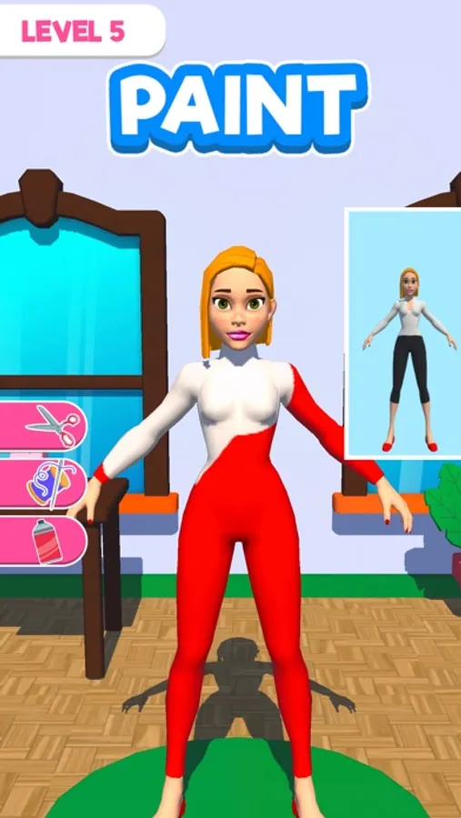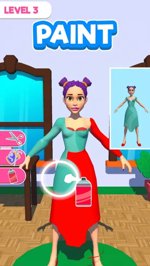 Cut, sew and paint the dresses according to the example image! Be the best tailor!