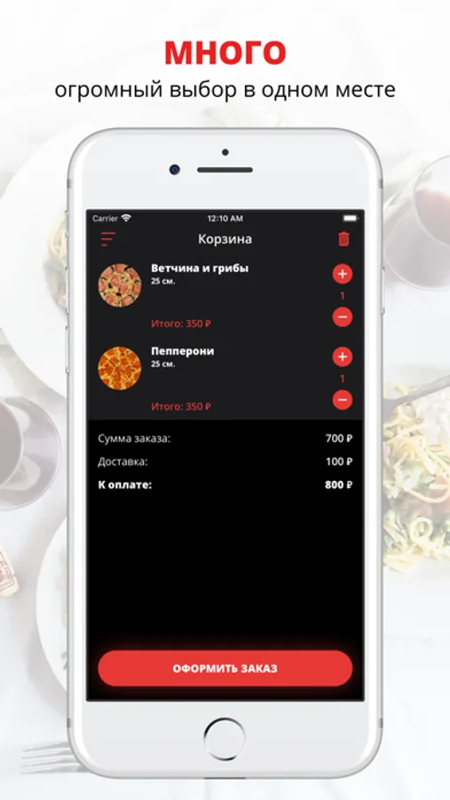Скачивайте наше приложение, оформляйте заказ и наслаждайтесь любимой едой, где бы Вы ни были! Приятного аппетита!