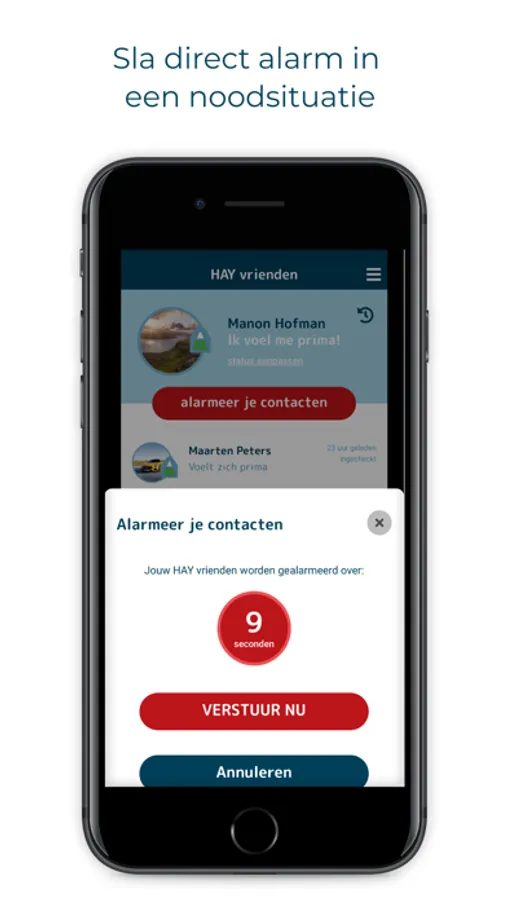 In de app kun je zelf de mensen toevoegen die jij volledig vertrouwt. In de app noemen we dit jouw ‘HAY – vrienden’.