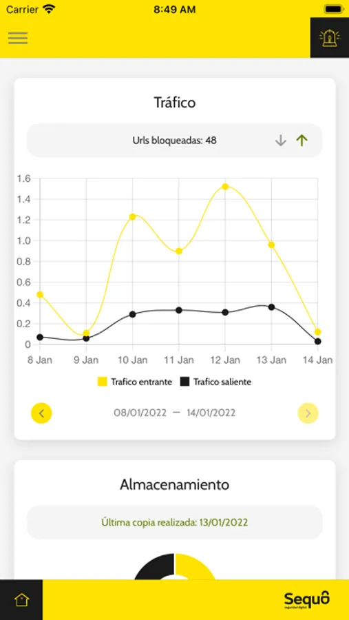 El valor diferencial de SEQUO es nuestro sistema de vigilancia permanente a través del SOC que monitoriza 24/7 la actividad en la red y alerta en caso de posible amenaza. Desde la APP de SEQUO tendrá control total de la seguridad digital de su organización, desde revisar alertas y el estado del servicio hasta aplicar políticas de seguridad sobre sus dispositivos, todo desde un entorno amigable y sencillo.