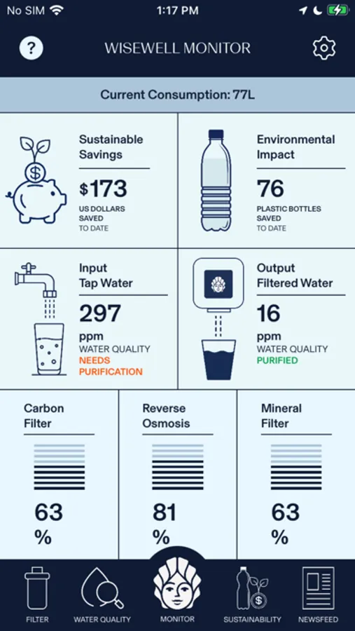 Trust Your Water with the Wisewell App. Once connected to your Wisewell, the app uses internal sensors, Bluetooth, and Wi-Fi connectivity to give clear insights into water quality, filter life, environmental impact, and financial savings.