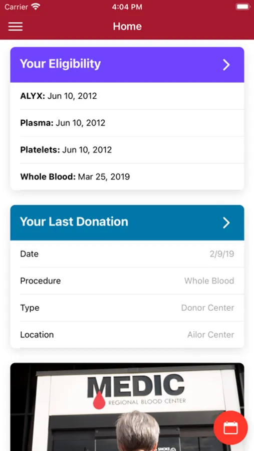 Use the MEDIC app to look up info on our donor centers, mobile drives, upcoming events, schedule an appointment, and review your donor history including your wellness metrics from your pre-donation mini-physical (blood pressure and heart rate).