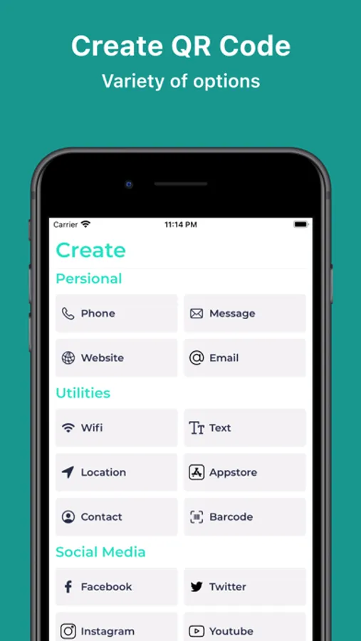 * Easily create common QR codes and barcodes in daily life such as: phone number, email, wifi, social network....
