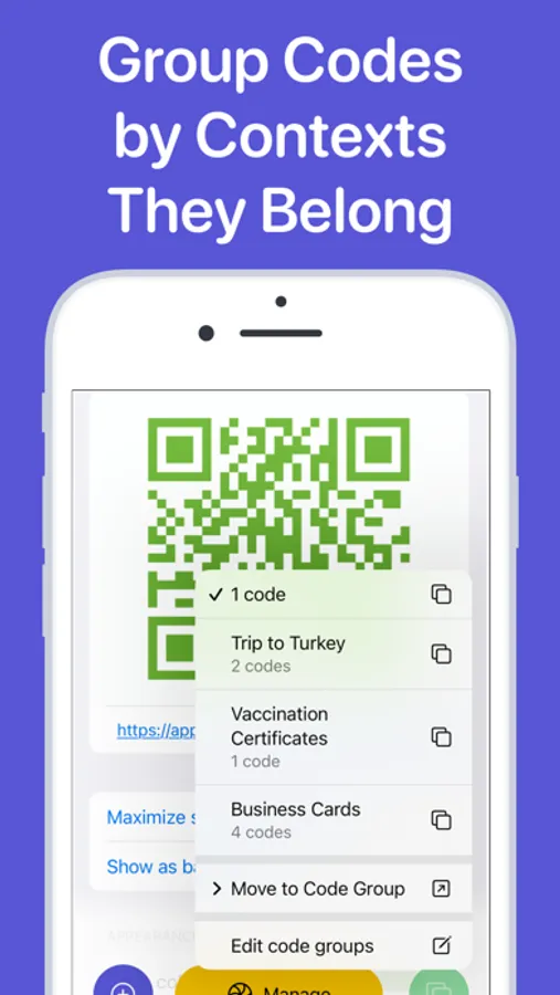 Planning a trip? You're likely will need PCR test, vaccination certificate, entry declaration and other. What do these document have in common? They contain QR code. And if you're going with somebody, the amount of codes to keep increases proportionally. How great is that in QRHero you can create a group for this trip and place all codes in it being able to switch between groups quickly (like you keep Tab Groups in Safari) and presenting codes for scanning by checking authority.