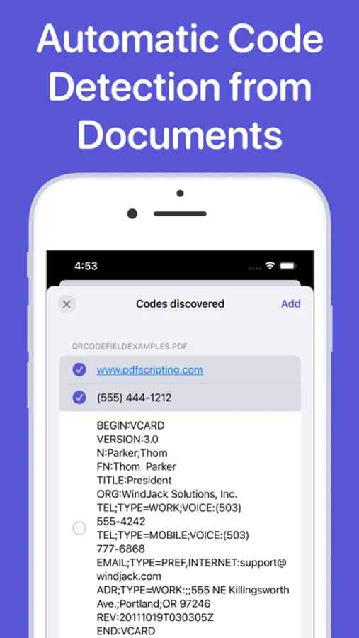 - add codes manually, scan surfaces with a camera, lookup for codes in PDF files