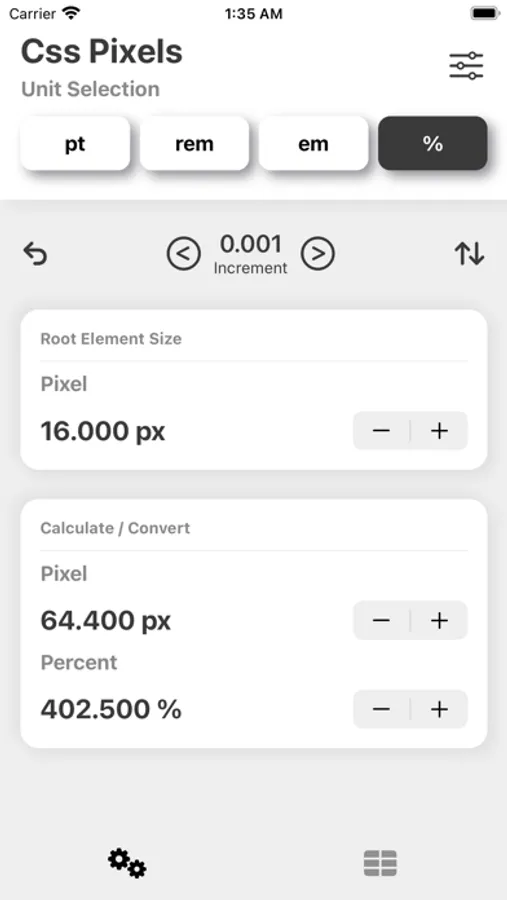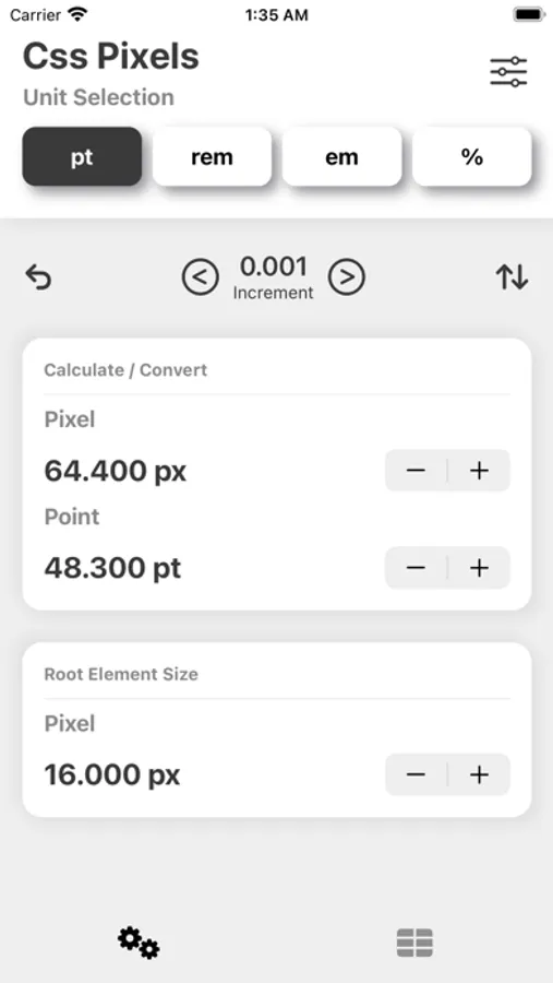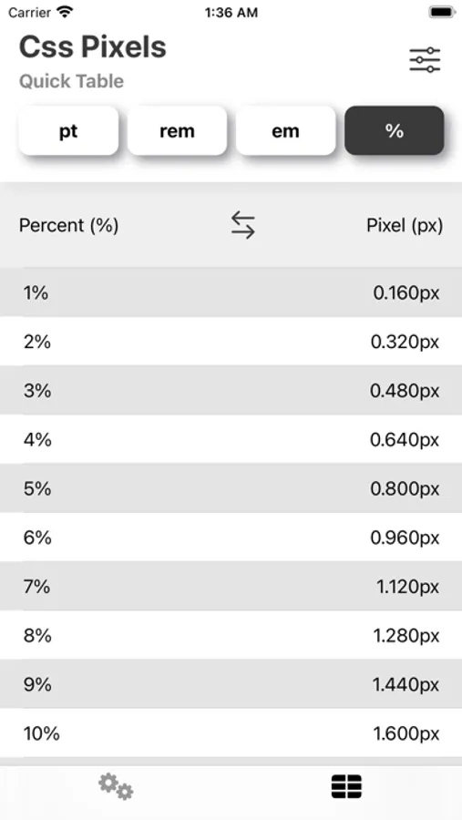 Css Pixel is a simple utility to help calculate and convert Pixels (px) between various different css units: Points (pt), Rem (rem), Em (em) and Percent (%).