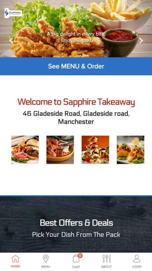 Sapphire Takeaway is based at 46 Gladeside Road Gladeside road, Manchester, Manchester, M22 9GQ. We aim to bring all of our customers the best value for money, services and food, and we are constantly aiming to improve our service in Manchester. You can now order food online. Try our online website which contains all our menus. We offer deliveries to all surrounding areas of Manchester. We offer all our customers fast food delivery. You can now order your favourite dish online and get fast home delivery. We are very particular about our service and quality to give our customers a better experience; which is why we are now proud to offer this fantastic online ordering website. You can even pay online and get your food delivered to your home in Manchester.