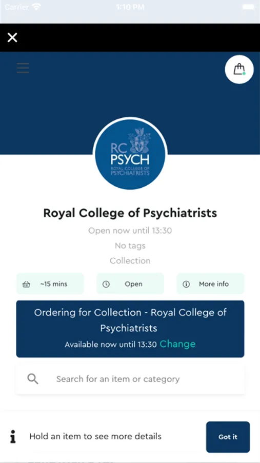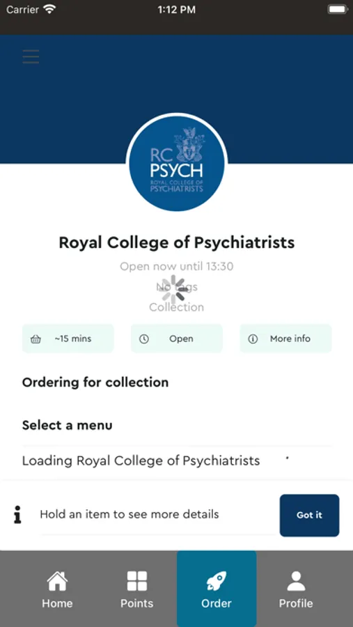 Online food ordering system for the collection of products. Payment is taken at time of sale with the facility for a points reward scheme