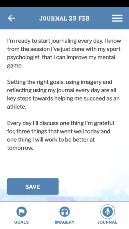Mindset: Sport Psychology helps you develop your mental game by bringing three of the core skills taught by sport psychologists: Goal setting, Imagery (sometimes called visualization) and self-reflection by keeping a daily journal of your successes and failures.