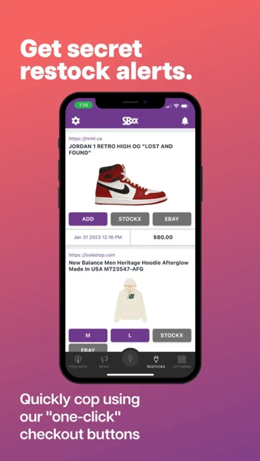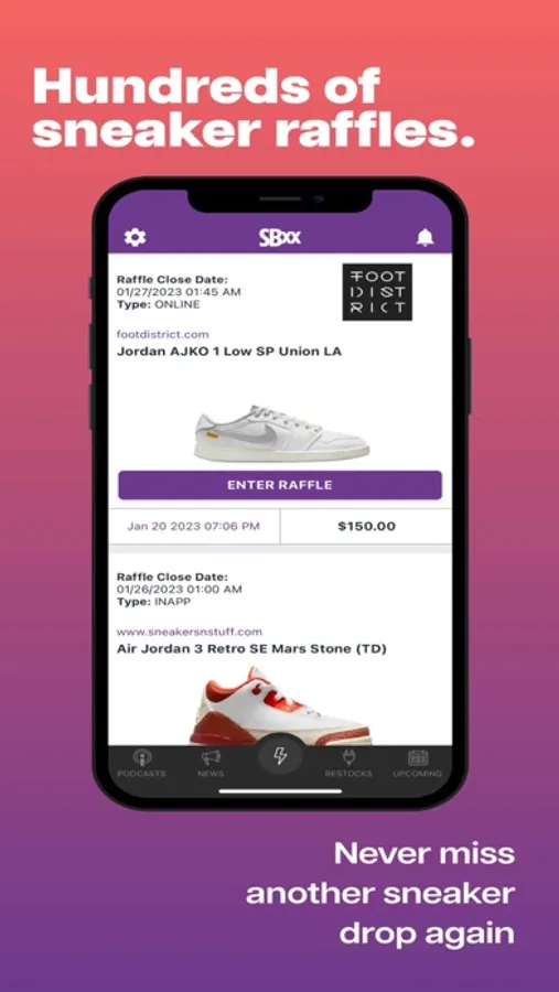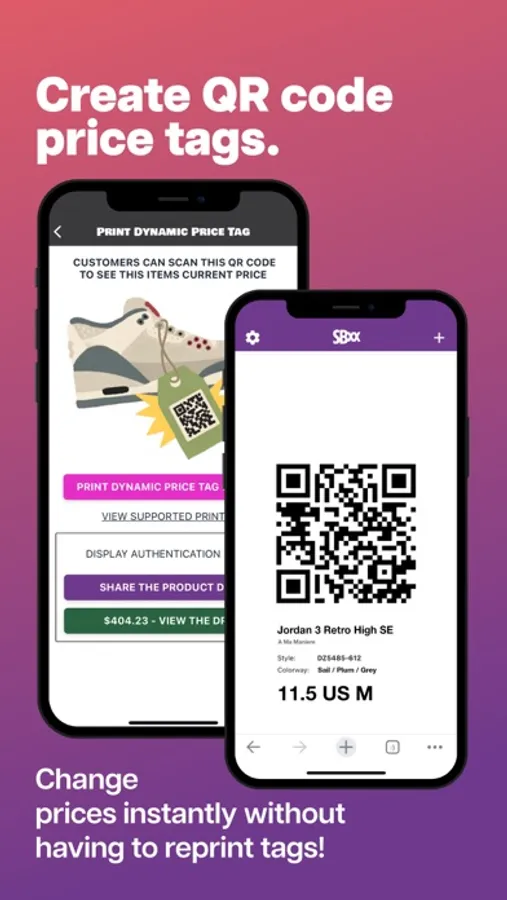 Take your sneaker reselling game to the next level with SBXX, the ultimate sneaker, and vintage reselling app! Instantly create a FREE storefront for all your inventory with a fully integrated website that connects with Stripe, PayPal, Venmo, Cashapp, and more - WITHOUT FEES! If you’re a collector, access top-secret intel on restock alerts, news, podcasts, backdoor deals, and more. Manage your entire collection, create wishlists, and even track your friends and customers' shoe and clothing sizes. Print out scannable QR code price tags and play Drip, Flip, or Skip to create your ultimate cop list. Download SBXX now and start maximizing your profits!