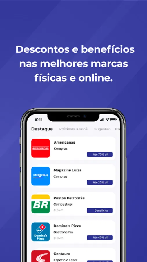 A Porto Real Benefícios te dá descontos em compras online e em lojas físicas de todo o Brasil. Com o app do nosso Clube de Vantagens, você acessa as principais marcas do país e utiliza o desconto na hora de pagar, de maneira rápida e sem custo.
