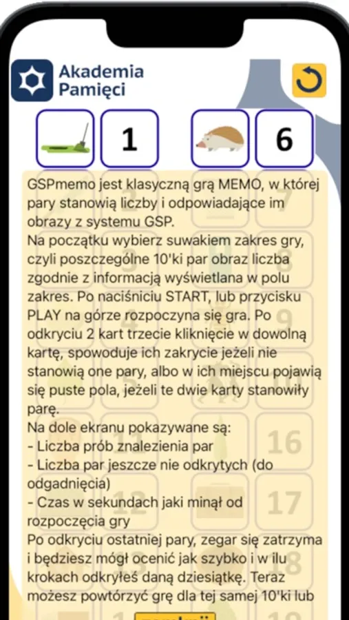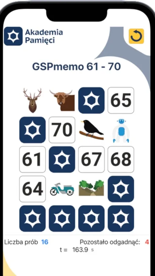 Klasyczna gra „memo” na bazie liczb i odpowiadającym im obrazów Głównego Systemu Pamięciowego (GSP).