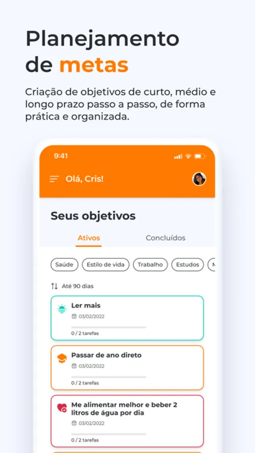 Criação de objetivos de curto, médio e longo prazo passo a passo, de forma prática e organizada.