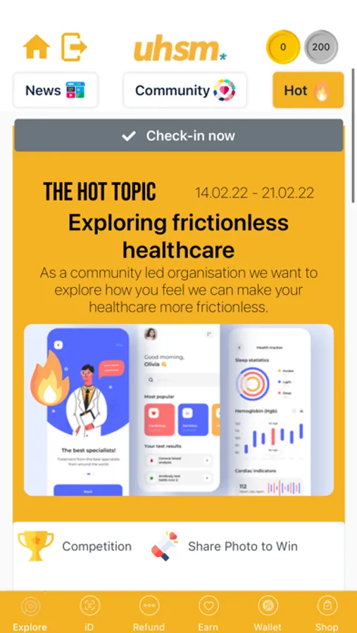 Users are rewarded for their contribution to social content with UHSM reward tokens. Social content includes blogs, articles, polls, surveys and streamed events.