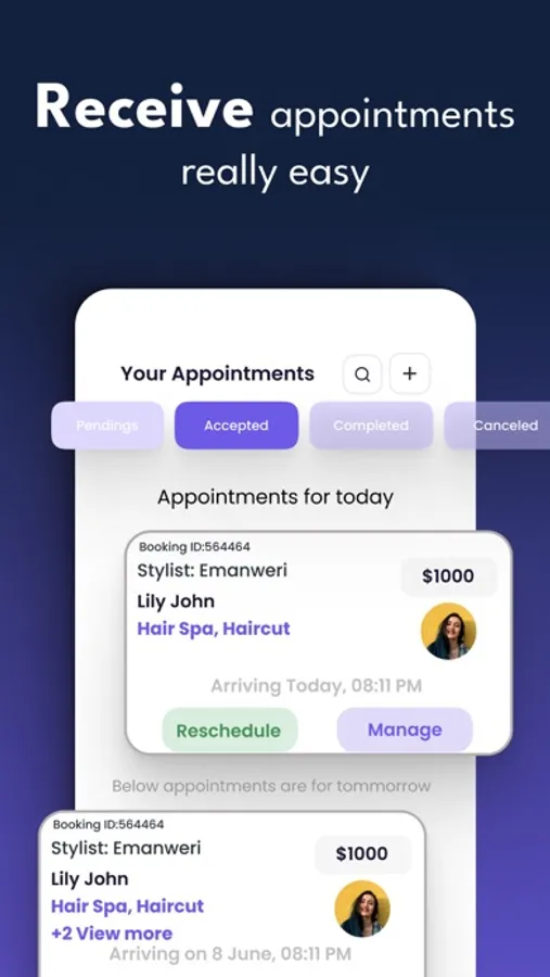 • Incredibly easy to use appointment calendar specifically suited for salons.