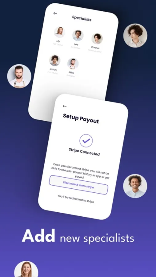 • Integrated card processing for easy in-app payments, with built-in protection from no shows, or cancellations*