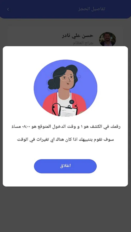 Patients can search for the needed doctor and check his clinics locations and times then reserve a number in the Queue, the app will always keep the patient notified with his dynamic expected doctor entry time.